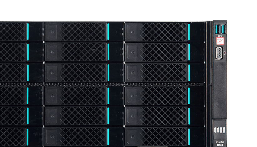 KunTai R524 存储型服务器是NO钱包数码基于鲲鹏处理器推出的新一代 ARM数据中心服务器。。。主要面向存储业务,,,,具有海量存储、、、、高性能、、、、低功耗以及易扩展的特点,,适合为大数据分析、、、、软件定义存 储等应用场景的工作负载进行髙效加速。。。。